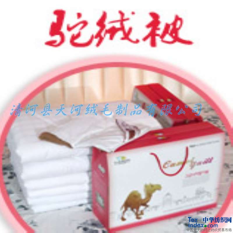 駱駝生長(cháng)于大沙漠,號稱(chēng)沙漠之舟。其絨毛自古就為當地居民作為擋風(fēng)御寒之用品。駝絨是取自于駱駝腹部的絨毛,其珍貴程度僅次于山羊絨。我公司生產(chǎn)的駝絨被是在青海、內蒙采購優(yōu)質(zhì)駝毛,經(jīng)過(guò)精梳、脫脂、去油、消毒、烘干等工序制作的駝絨絮片。面料采用高支高密純棉布,經(jīng)過(guò)立體電腦絎縫機加工制作而成的,其彈力松軟、保暖舒適是駝絨制品中的精品,并對中老年人風(fēng)濕風(fēng)寒有一定的保健效果。