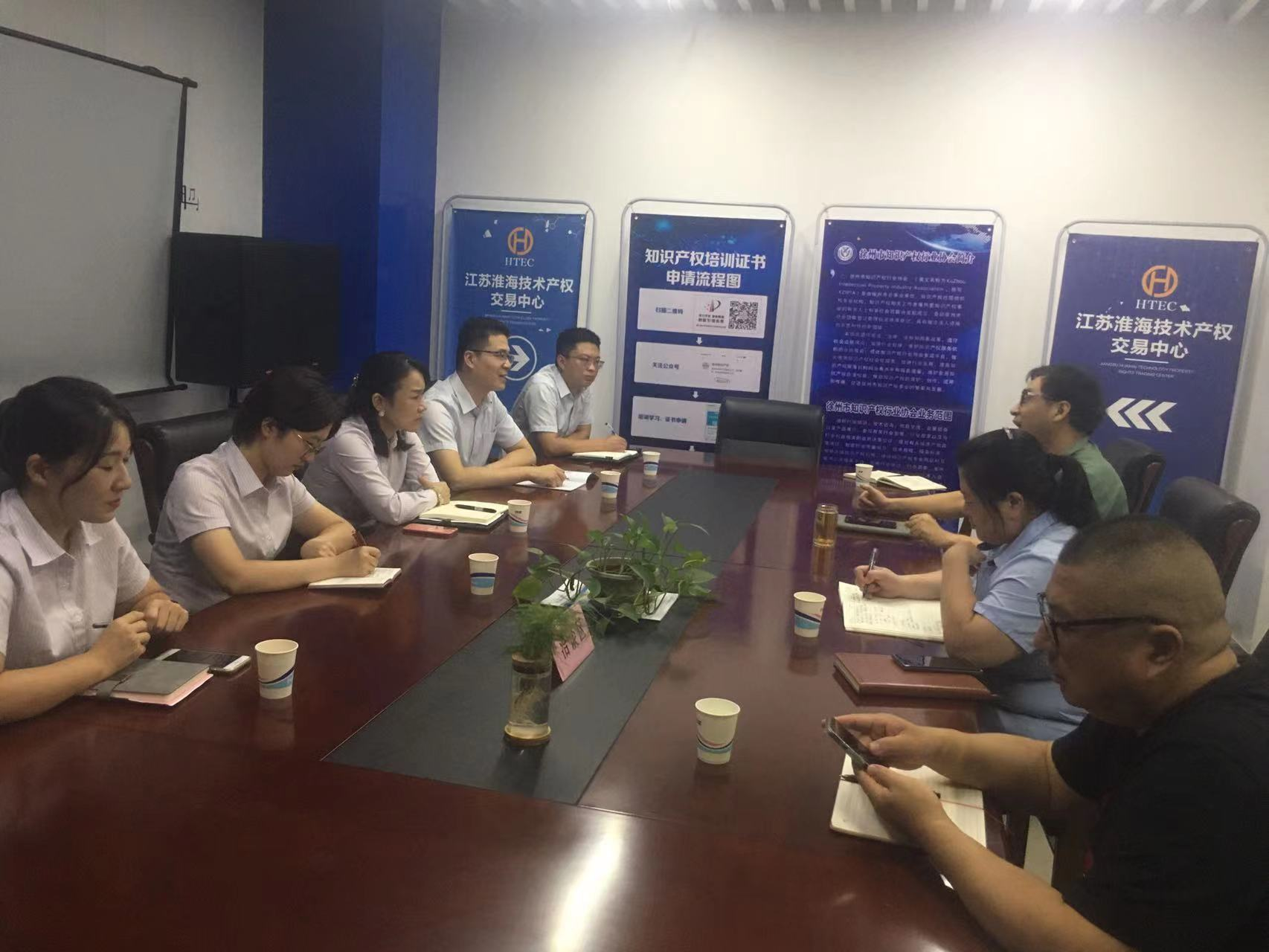9月14日下午,江蘇銀行徐州分行小企業(yè)部闞浩總經(jīng)理、劉曉夏經(jīng)理,科技支行郭景行長(cháng)、李朋副行長(cháng)、汪小琳副行長(cháng)一行到中心就“揭榜掛帥”技術(shù)轉移項目融資服務(wù)產(chǎn)品開(kāi)展現場(chǎng)工作交流。邱承智總經(jīng)理表示熱烈的歡迎,簡(jiǎn)要回顧了雙方合作以來(lái)在知識產(chǎn)權質(zhì)押業(yè)務(wù)上取得的成績(jì),重點(diǎn)就中心開(kāi)發(fā)的專(zhuān)利技術(shù)價(jià)值評估系統的應用前景進(jìn)行了展望,希望共同推進(jìn)其市場(chǎng)化運用。
