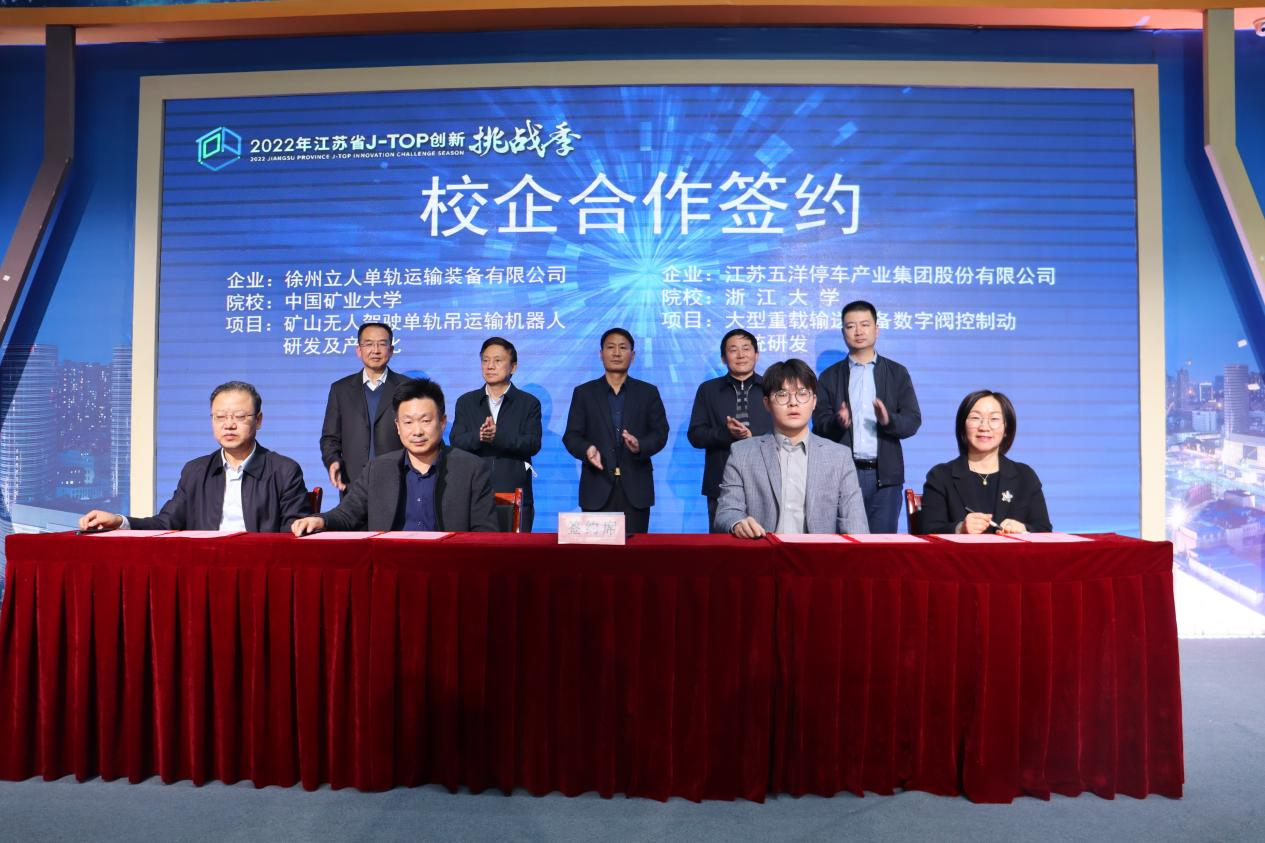 中礦科光、五洋停車(chē)等5家企業(yè)現場(chǎng)發(fā)榜安全應急產(chǎn)業(yè)需求榜單,中國礦業(yè)大學(xué)、浙江大學(xué)等5家挑戰者積極應征揭榜,四位不同行業(yè)領(lǐng)域的專(zhuān)家對項目進(jìn)行了精彩點(diǎn)評,現場(chǎng)互動(dòng)熱烈。中國礦業(yè)大學(xué)與徐州立人單軌運輸裝備有限公司合作的“礦山無(wú)人駕駛單軌吊運輸機器人研發(fā)及產(chǎn)業(yè)化”等4個(gè)校企合作項目現場(chǎng)簽約。