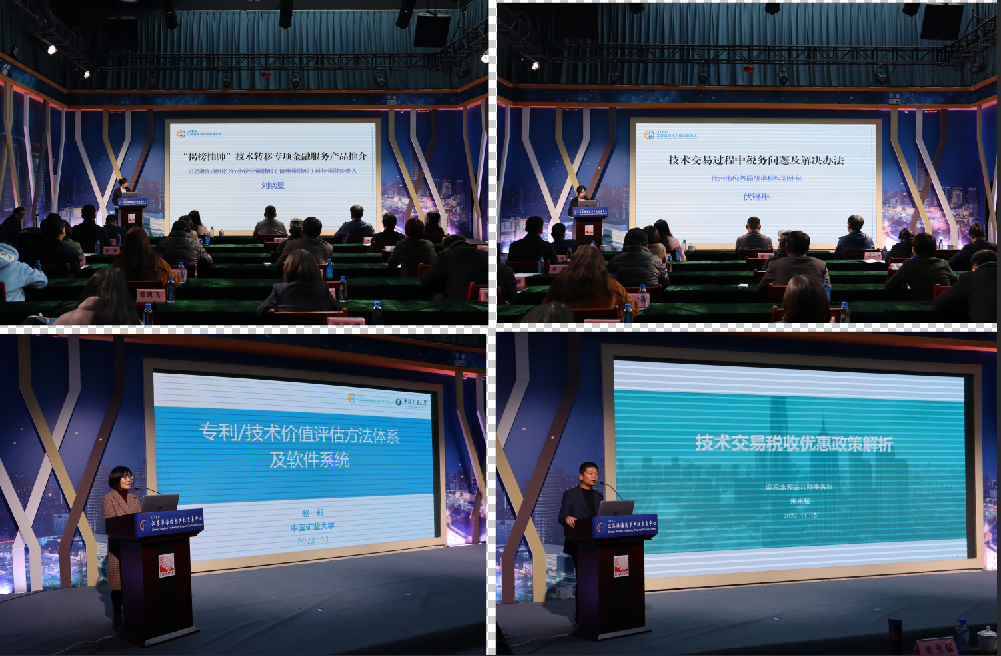 11月15日,2022年“技術(shù)經(jīng)理人思享匯”金融財稅經(jīng)驗分享專(zhuān)場(chǎng)活動(dòng)在江蘇淮海技術(shù)產(chǎn)權交易中心順利舉辦,高校、科研院所、金融機構、技術(shù)經(jīng)理人事務(wù)所、技術(shù)經(jīng)理人等通過(guò)線(xiàn)上、線(xiàn)下多方式參會(huì )?;顒?dòng)中江蘇省技術(shù)產(chǎn)權交易市場(chǎng)業(yè)務(wù)總監湯倩倩圍繞技術(shù)經(jīng)理人比較關(guān)心的(揭榜掛帥)技術(shù)轉移品牌活動(dòng)、省產(chǎn)學(xué)研指導性計劃項目申報過(guò)程中常見(jiàn)問(wèn)題及申報流程做了詳細講解。江蘇銀行徐州分行金融部科技金融負責人劉曉夏、徐州市稅務(wù)局所得稅科副處長(cháng)伏琳琳、南京永邦會(huì )計師事務(wù)所主任會(huì )計師朱永猛、中國礦業(yè)大學(xué)教授趙莉分別就(揭榜掛帥)金融服務(wù)產(chǎn)品、技術(shù)轉讓相關(guān)稅收政策、技術(shù)交易過(guò)程中遇到的財稅問(wèn)題及解決辦法、專(zhuān)利技術(shù)價(jià)值評估進(jìn)行了專(zhuān)題分享。