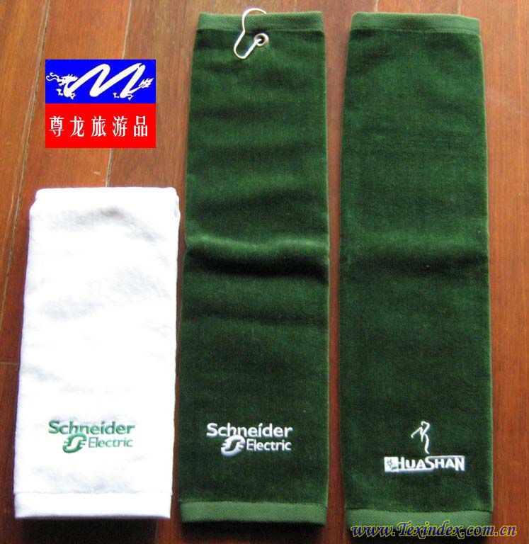 用途:毛巾 成份:100%棉 規格:40CMX54CM 型號:色織提LOGO高爾夫毛巾